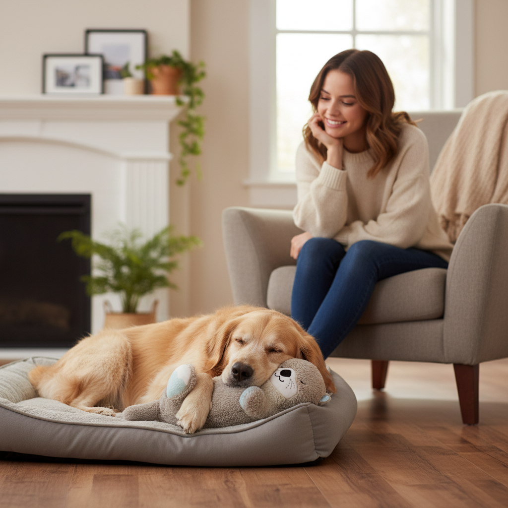 With its ultra-soft texture and calming heartbeat, this plush creates an ideal, safe space for your pet. It helps them feel secure and protected, encouraging them to fall asleep faster and enjoy a deeper, more peaceful slumber. Owners reported that 92% of their dogs slept more soundly and peacefully after using the calming otter, leading to a happier, healthier pet.