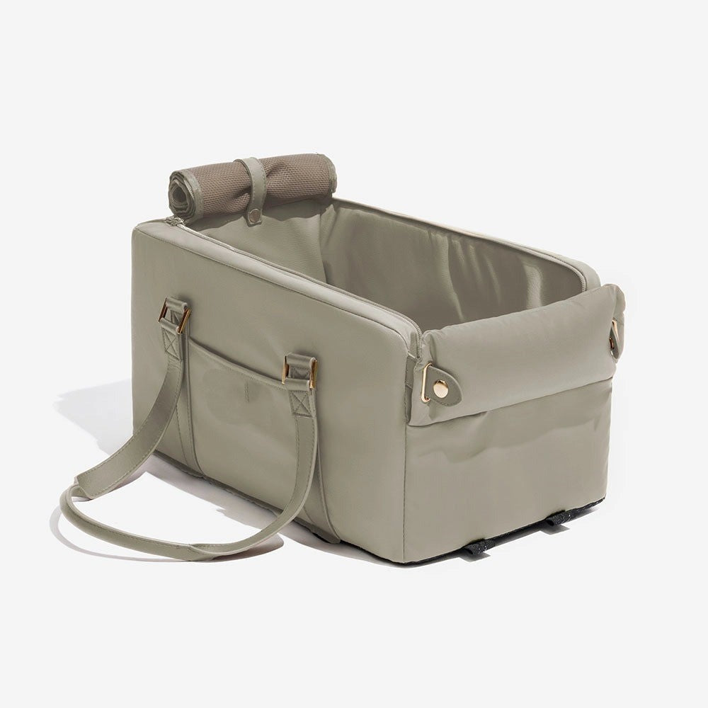 Give your pet the ultimate travel experience with the PawVoyager, a luxurious faux leather pet car seat that doubles as a secure carrier. Made with high-quality materials and precise stitching, it keeps your pet safe, cozy, and close during car rides. The breathable mesh window, cushioned interior, and foldable front cushion work together to ease anxiety and provide comfort for pets of all sizes. Plus, it's water-repellent, easy to clean, and versatile - making it perfect for modern pet owners who want the best for their furry friends.